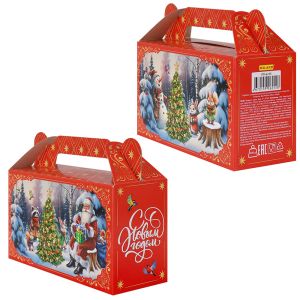 Коробка для конфет Новогодняя Сундучок " Миленд " Дед Мороз собрал зверят, 500г, 17,5*6,7*15,5см