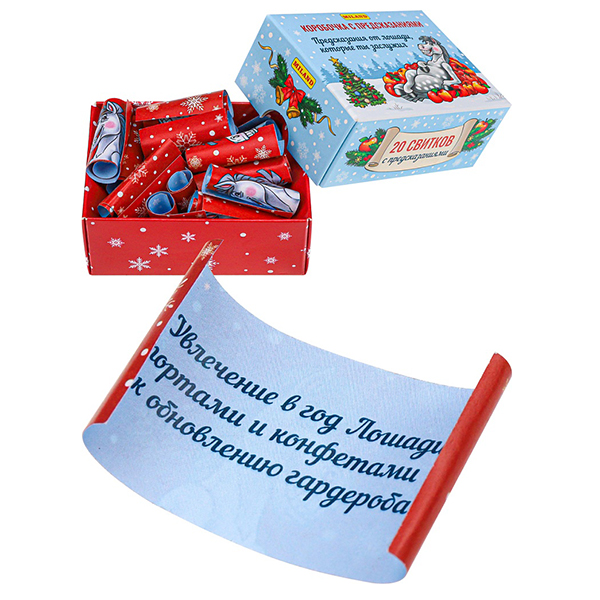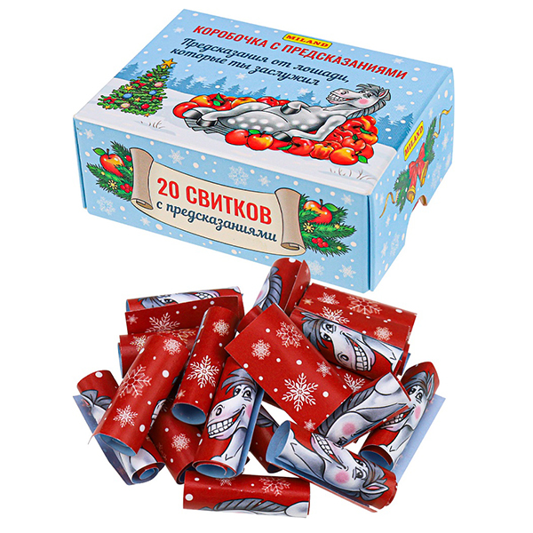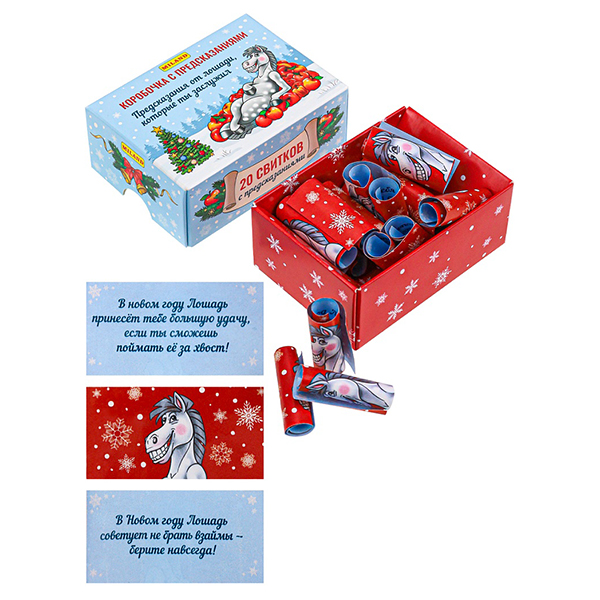 Коробочка с предсказаниями " Миленд " Символ года- Предсказания от Лошади, которые ты заслужил, 20 свитков с предсказаниями, 7,4*5,6*3,2см