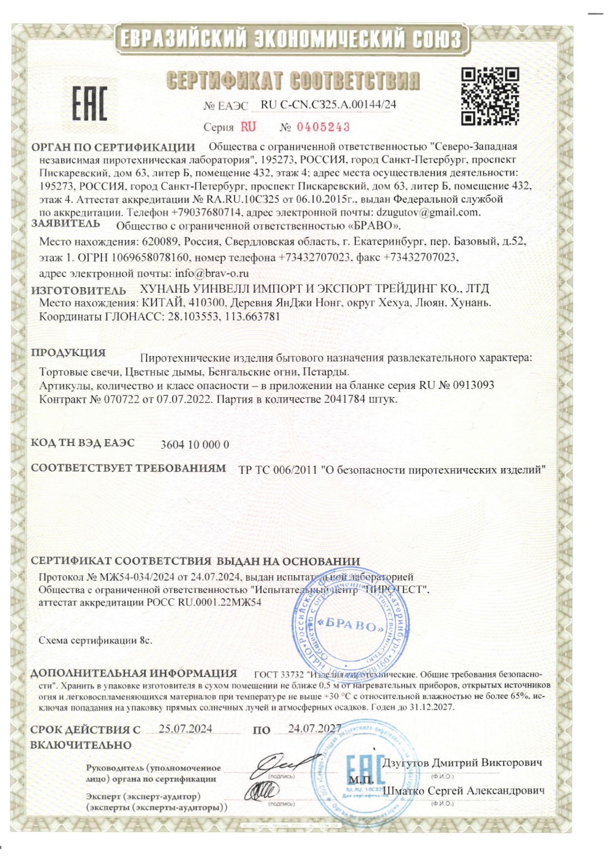 1. Удерживайте изделие за свободную от пиротехнического состава часть в вытянутой руке или вертикально зафиксировав её в устойчивом основании.