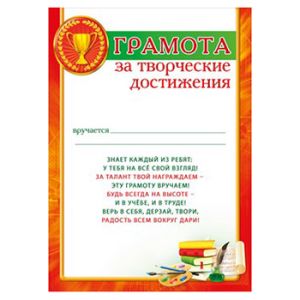 Грамота за творческие достижения А4 406 " Мир поздравлений " без отделки, текст