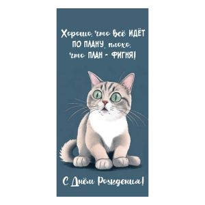 Конверт для денег " Праздник " 410 С Днем рождения! Хорошо, что все идет по плану... 168*84мм, глянцевый уф-лак, текст