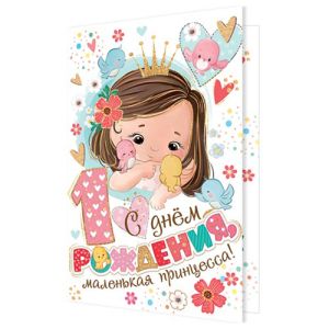 Открытка " Мир открыток " 2-46 Детская- С днём рождения! 1год Детская- Маленькая принцесса! 251*194мм, рельеф, блестки, текст