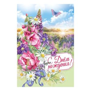 Открытка " Праздник " 445 С Днем рождения! Полевые цветы, 126*182мм, блестки в лаке, текст
