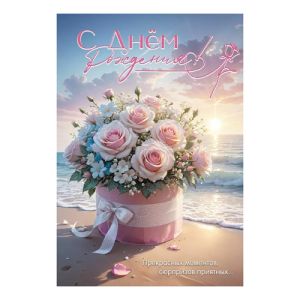 Открытка " Праздник " 445 С Днем рождения! Прекрасных моментов, сюрпризов..., Букет на берегу моря, 126*182мм, радужные блестки в лаке, текст