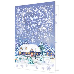 Открытка " Мир открыток " 2-46 Новогодняя- С Новым годом! Счастья, радости, удачи! 251*194мм, блестки, текст