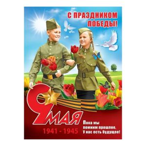 Плакат " Праздник " 941 А2 9 Мая- С праздником Победы! 9 мая Мальчик и девочка, Георгиевская лента, 596*440мм