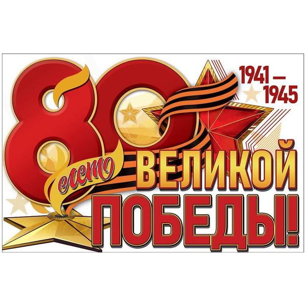 Плакат " Праздник " 975 А1 9 Мая- 80 лет Великой Победы! Георгиевская лента, красная звезда, вечный огонь, без отделки, текст, 906*596мм