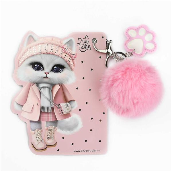 Брелок меховой арт. 70867 / 48 КОШЕЧКА В ПАЛЬТО ( размер подвеса: 60x60 мм, материал подвеса: искусственный мех, искусственная кожа; форма подвеса: лапка, шар; цвет подвеса: розовый; индивидуальная упаковка: подложка из мелованного картона + ПЭТ-пакет с европодвесом).