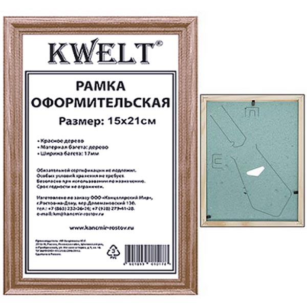 Фоторамка " KWELT " деревянная (МДФ) 15*21см мокко, акриловое стекло 0,5мм, сосновый багет, ширина багета - 17мм