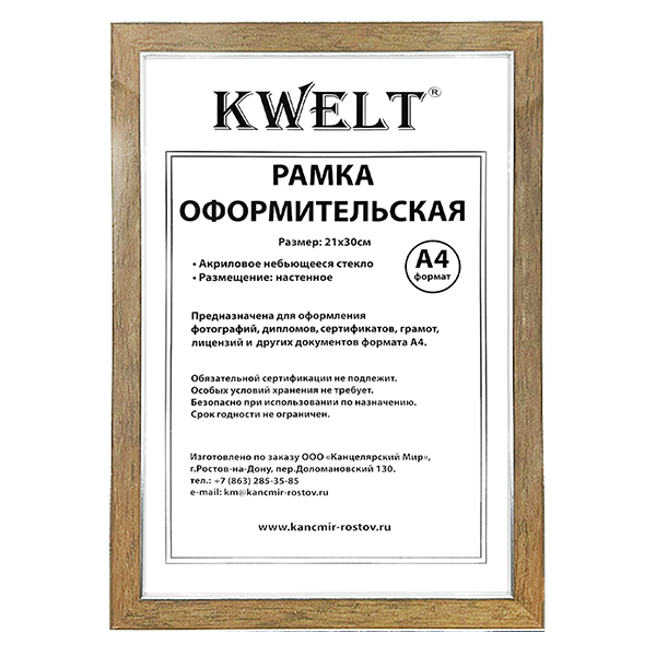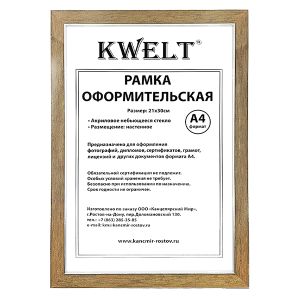 Фоторамка " KWELT " пластиковая А4 21*29,7см Светло-коричневая, акриловое стекло 0,5мм, ширина багета - 20мм, серебро