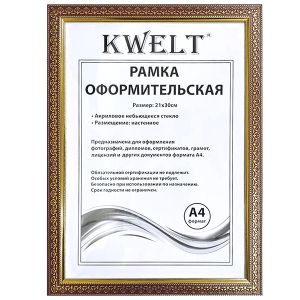 Фоторамка " KWELT " пластиковая А4 21*29,7см Темно-коричневая с рельефным узором, акриловое стекло 0,5мм, ширина багета - 20мм, золото