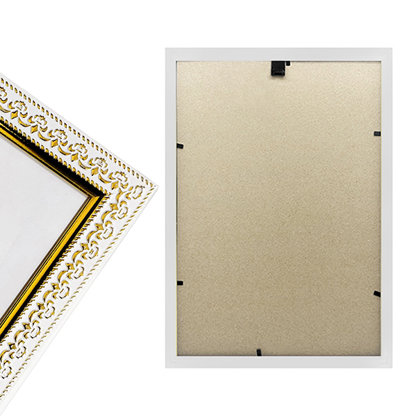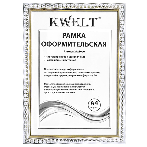 Фоторамка " KWELT " пластиковая А4 21*29,7см Белая с рельефным узором, акриловое стекло 0,5мм, ширина багета - 20мм, золото