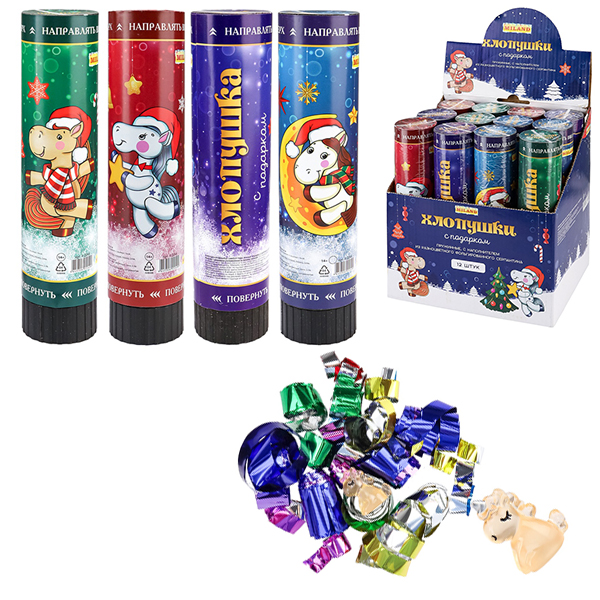 Хлопушка " Миленд " Символ года- Лунная лошадка 20см серпантин фольгированный, с сюрпризом