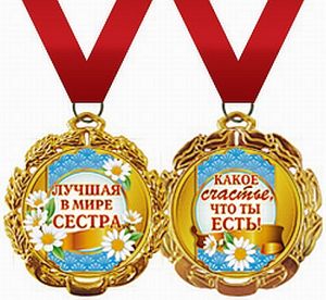 Медаль двухсторонняя " Лучшая в мире сестра " металлическая на ленте, индивидуальная упаковка