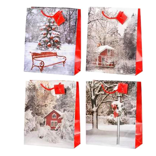 Пакет Новогодний бумажный " Basir " 32*44*12см Зима, ассорти (без возможности выбора дизайна), ламинированный