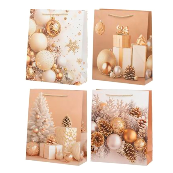 Пакет Новогодний бумажный " Basir " 18*23*10см Новогодний шик, ассорти (без возможности выбора дизайна), ламинированный, блестки