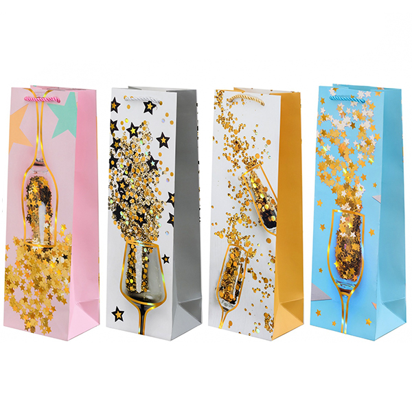 Пакет бумажный " Basir " 36*9*12см под бутылку Праздничный, ассорти (без возможности выбора дизайна), ламинированный, тиснение фольгой