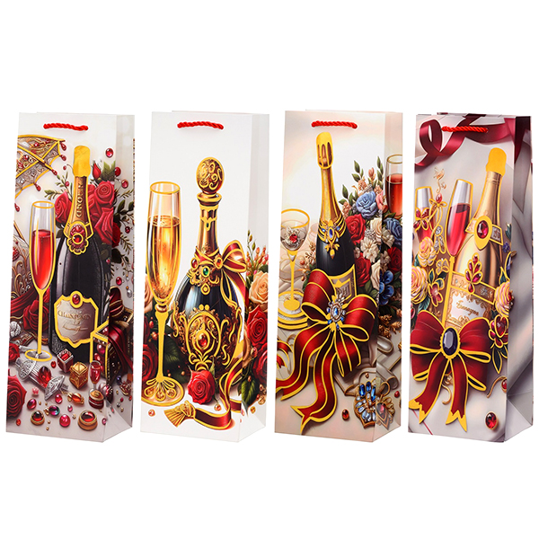 Пакет бумажный " Basir " 36*9*12см под бутылку С Праздником, ассорти (без возможности выбора дизайна), ламинированный