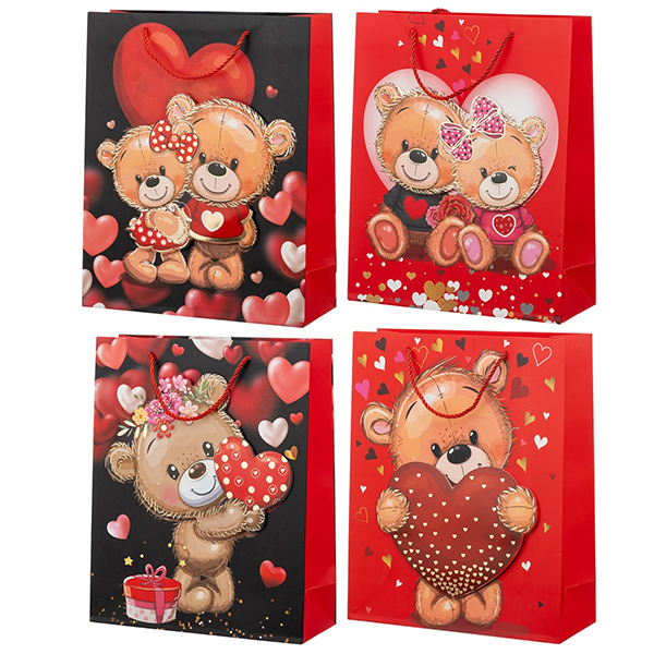 Пакет бумажный " Basir " 18*23*10см Мишки Love, ассорти (без возможности выбора дизайна), деталь на скотче, ламинированный, золотое тиснение