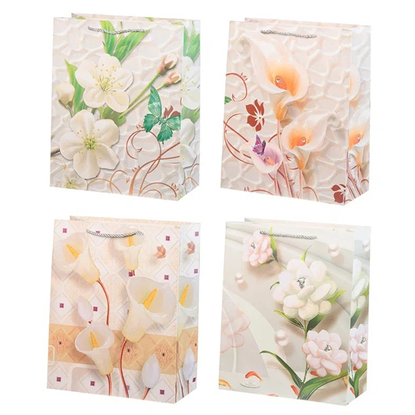 Пакет бумажный " Basir " 18*23*10см Цветы, ассорти (без возможности выбора дизайна), ламинированный
