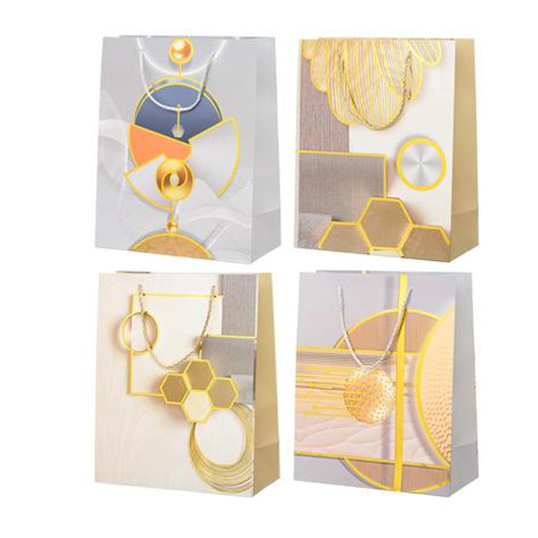 Пакет бумажный " Basir " 26*32*12см Геометрия, ассорти (без возможности выбора дизайна), ламинированный, тиснение фольгой