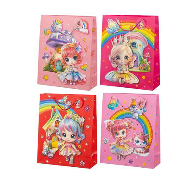 Пакет бумажный " Basir " 18*23*10см Куколка, ассорти (без возможности выбора дизайна), деталь на скотче, ламинированный, блестки