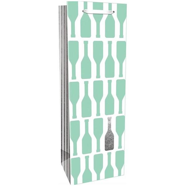 Пакет бумажный " Миленд " крафт 12,5*36,5*9см под бутылку Серебряная бутылка, тиснение фольгой