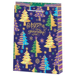 Пакет Новогодний бумажный " Мир открыток " 32,5*45*10см Чудесного праздника, ламинированный
