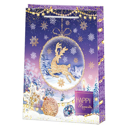 Пакет Новогодний бумажный " Мир открыток " 18*22,7*10см Золотой олень, ламинированный