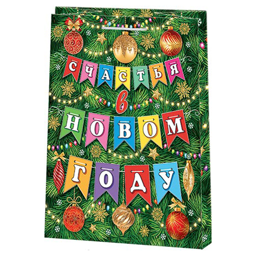 Пакет Новогодний бумажный " Мир открыток " 26*32,7*13,5см Счастья в новом году, ламинированный
