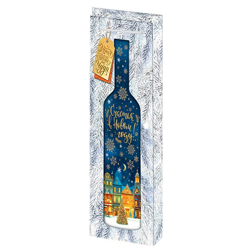 Пакет Новогодний бумажный " Мир открыток " 14*35*11см под бутылку Бутылка, ламинированный