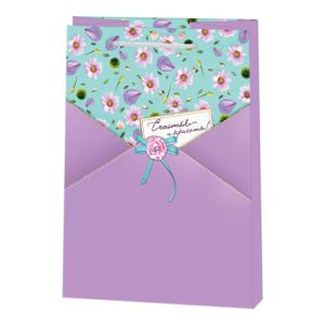 Пакет бумажный " Мир открыток " 18*22,7*10см Цветы на голубом, ламинированный