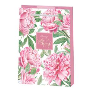 Пакет бумажный " Мир открыток " 13,5*18*6см Розовые пионы, ламинированный