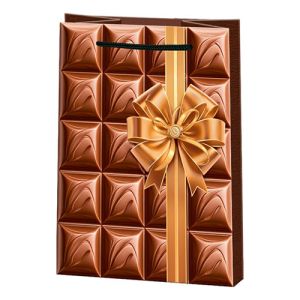 Пакет бумажный " Мир открыток " 13,5*18*6см Плитка шоколада с золотым бантом, ламинированный