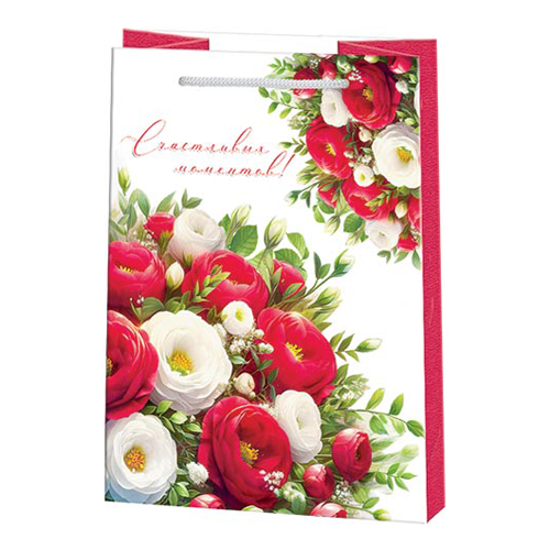 Пакет бумажный " Мир открыток " 13,5*18*6см Букет красных и белых цветов, ламинированный