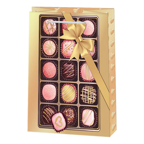 Пакет бумажный " Мир открыток " 18*22,7*10см Коробка конфет с золотым бантом, ламинированный