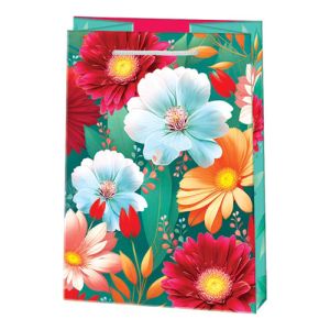 Пакет бумажный " Мир открыток " 18*22,7*10см Разноцветные цветы, ламинированный