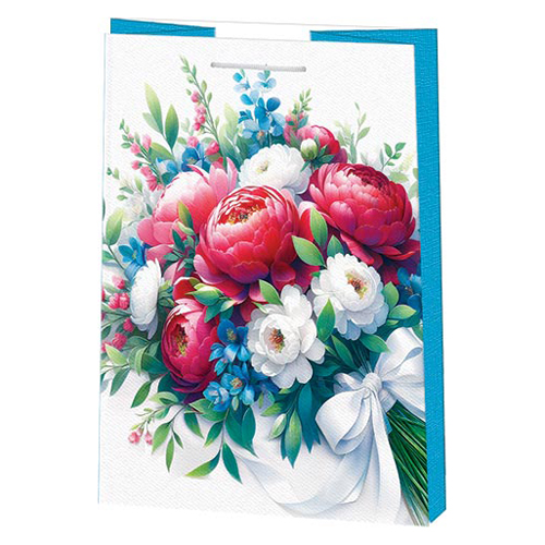 Пакет бум " Мир открыток " 26*32,7*13,5см Букет разноцветных пионов, ламинированный