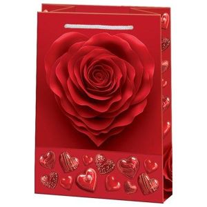 Пакет бум " Мир открыток " 13,5*18*6см Роза в форме сердца, ламинированный