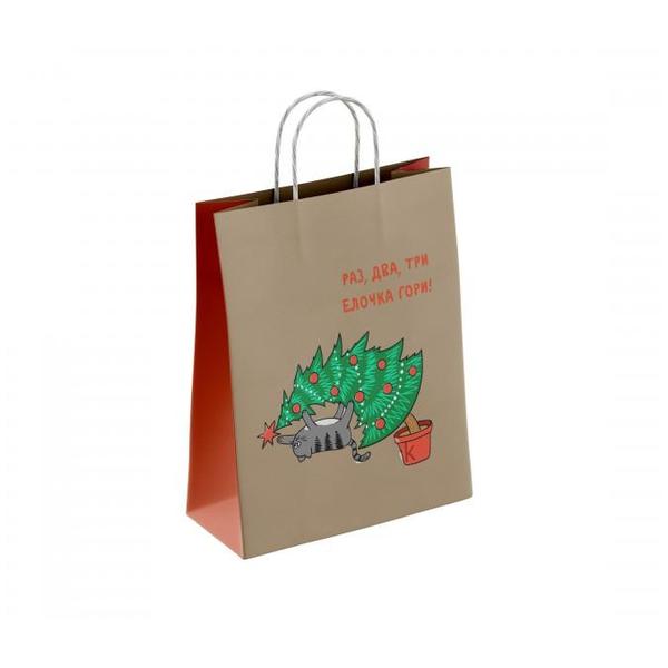 Пакет Новогодний бумажный крафт " ПЗБМ " 22*25*12см Гори, крученые ручки