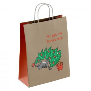 Пакет Новогодний бумажный крафт " ПЗБМ " 26*35*15см Гори, крученые ручки
