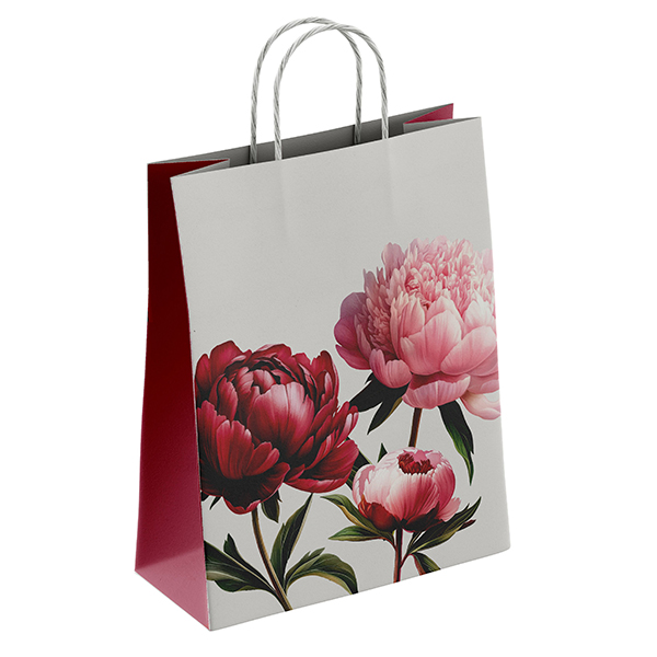 Пакет бумажный " ПЗБМ " 22*25*12см Пион коричневый, крученые ручки