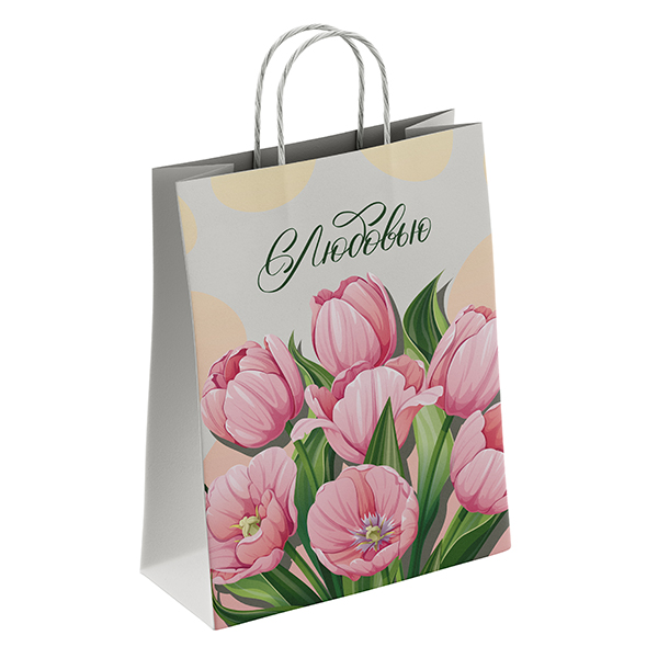 Пакет бумажный " ПЗБМ " 22*25*12см Тюльпаны, крученые ручки
