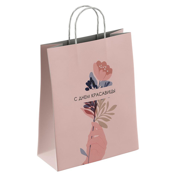Пакет бумажный " ПЗБМ " 26*35*15см С днем красавицы, крученые ручки