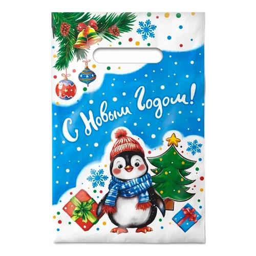 Пакет Новогодний ПЭ " Интерпак " с вырубной ручкой ПВД, 20*30см 30мкм Лёлик