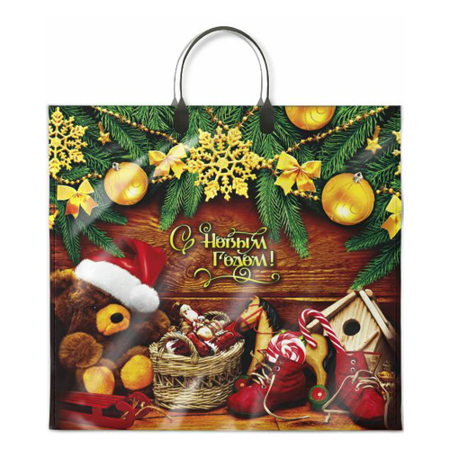Пакет Новогодний ПЭ " Интерпак " с пластиковой ручкой ПВД, 38*35см 90мкм Новогодняя затея