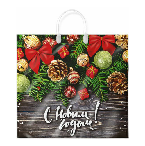 Пакет Новогодний ПЭ " Интерпак " с пластиковой ручкой ПВД, 38*35см 90мкм Рождественские бантики