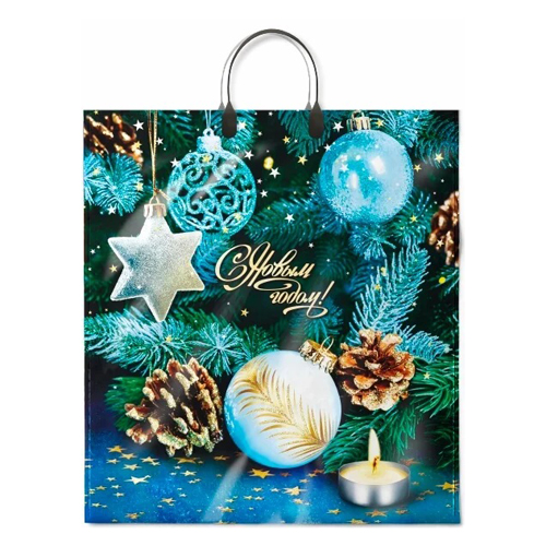 Пакет Новогодний ПЭ " Интерпак " с пластиковой ручкой ПВД, 40*44см 100мкм Золотые шишки