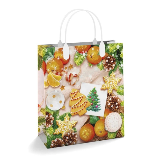Сумка подарочная из мягкого пластика с пластиковой ручкой 23х(27+10) см/150мкм