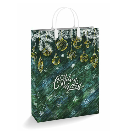 Пакет Новогодний ПЭ " Интерпак " с пластиковой ручкой МП, 30*40см 150мкм Золотые игрушки